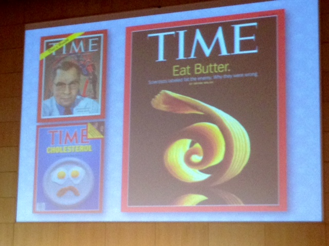 The opening keynote, Gary Taubes (@garytaubes), author of ‘Why We Get Fat’ and ‘Good Calories, Bad Calories’ questioned the cause for people to overeat. Taubes uprooted the current energy balance hypothesis where, ‘too much eating and too little physical activity causes people to overeat’. He planted his alternate hypothesis: ‘obesity is a disorder driven fundamentally by insulin and dietary carbohydrates’. Taubes proposed his solution, ‘to restrict the causative agent i.e. refined grains and sugars’.