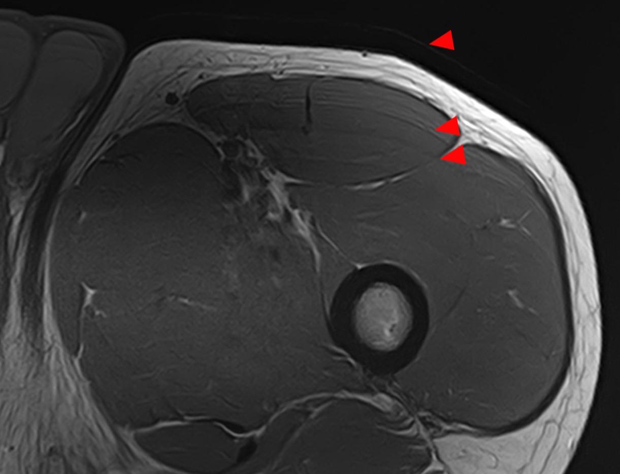 Flores DV, Mejía Gómez C, Estrada-Castrillón, Smitaman S, Pathria MN. MR Imaging of Muscle Trauma: Anatomy, Biomechanics, Pathophysiology, and Imaging Appearance. Radiographics 2018; 38: 124-148.
