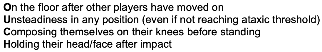 Whilst these visible or video signs have been highlighted in existing educational resources(7), they can be summarised and hopefully reinforced by the #OUCH acronym: