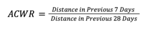 (2) Acute:chronic workload ratio (ACWR, 7:28 coupled rolling average):