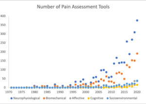 Figure 3 – Pain assessment tools in the 5 pain assessment domains from 1971-2021.