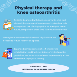 In this blog, we explain the findings from our recent study on the relation of timing of physical therapy initiation after a diagnosis of knee osteoarthritis with risk of opioid use in the future (1).