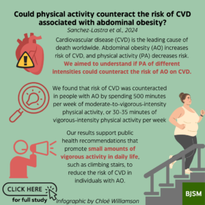 This blog provides a summary of a recently published prospective cohort study exploring joint associations of device-measured physical activity and abdominal obesity with incident cardiovascular disease.
