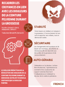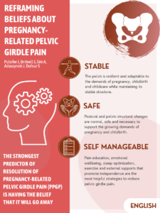 1. Pulsifer, J., Britnell, S., Sim, A., Adaszynski, J., & Dufour, S. (2022). Reframing beliefs and instiling facts for contemporary management of pregnancy-related pelvic girdle pain. British journal of sports medicine56(22), 1262–1265. https://doi.org/10.1136/bjsports-2022-105724