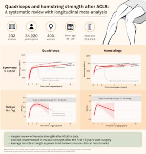 - Girdwood M, Culvenor AG, Rio EK, Patterson BE, Haberfield M, Couch J, et al. Tale of quadriceps and hamstring muscle strength after ACL reconstruction: a systematic review with longitudinal and multivariate meta-analysis. Br J Sports Med. 2024 Oct 10; Available from: https://bjsm.bmj.com/content/early/2024/10/10/bjsports-2023-107977