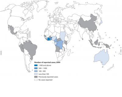 - A global map representing countries that have reported cases of Buruli ulcer disease as of 2009 (WHO). Merritt RW, Walker ED, Small PLC, Wallace JR, Johnson PDR, et al. (2010) Ecology and Transmission of Buruli Ulcer Disease: A Systematic Review. PLOS NTDs.