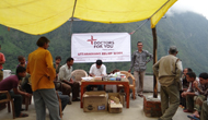 “Doctors-For-You” (DFY), an Indian medical humanitarian organisation arrived at Badrinath to help with the medical rescue and with assessing the medical and nutritional needs in the inaccessible affected areas. Evacuating people by road was impossible and the rush to send air relief an imperative. Despite the rescue efforts by the army and the National Disaster Response Force, it took more than a fortnight to rescue the thousands of pilgrims who were stranded. In the first three days, DFY set up camps for people who were stranded, and the Army bought back the most critically ill people to these camps. DFY sent two more teams to the areas of Rudraprayag, Guptkashi, Phata, and Sonprayag. One DFY team remained in Phata and worked alongside the government rescue efforts, catering to the medical needs of the surrounding villages. Most villages are still cut off from the outside world. The other team worked with a partner organisation in the remote villages surrounding Rudraprayag.