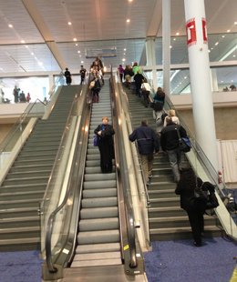 The main way into the exhibition hall has two sets of stairs and a single escalator. I did wonder if it was because it was a public health conference that the escalator took people down but you had to walk up the long flights of steps.