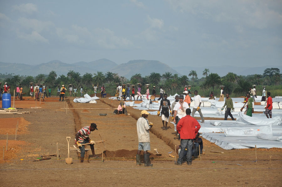 Building the Ebola management centre in Magburaka, Sierra Leone. December 2014 © Ralf Ohnmacht/MSF