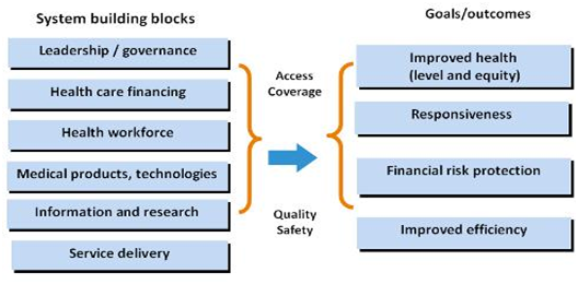 The World Health Organization’s (WHO) health system framework is useful to understand the issues at hand. According to it, there are six building blocks on which any health system works. Those are leadership and governance, healthcare financing, health workforce, medical products and technologies, information and research, and service delivery. Neglect of any one component may lead to unintended consequences in the process of reforming a health system.