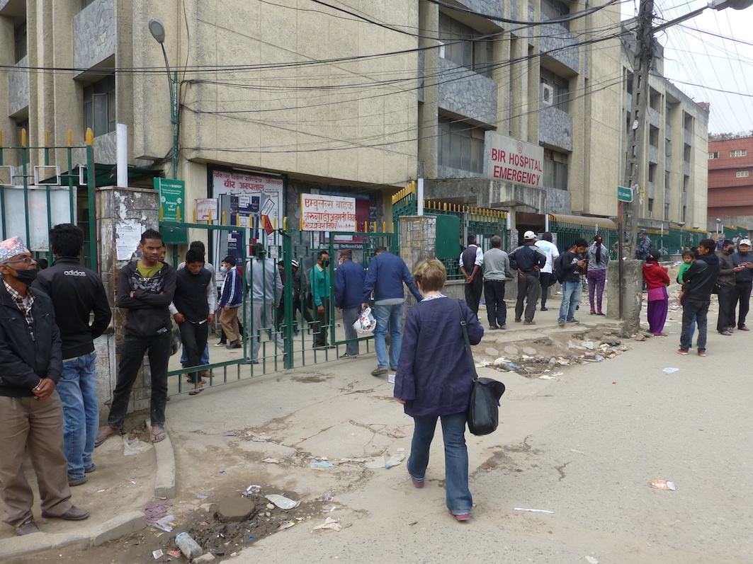 On the Sunday morning we went to the BIR Hospital where our Nepali colleagues worked to offer assistance. Over 100 dead bodies and 250 injured had been brought into this hospital alone. However our oncological skills were not really what they needed so at this point we decided to try to leave Nepal as we could not be of any help—and water was already beginning to run out.