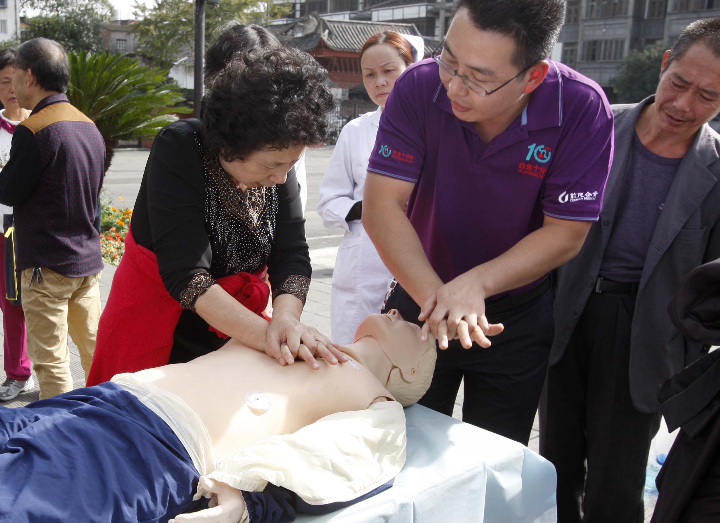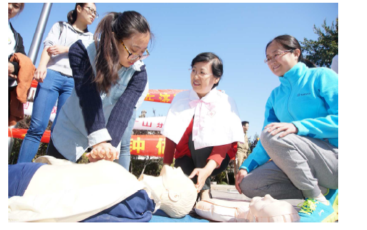 The 6th “EPTM—China’s Self-rescue and Assisted Rescue Day” took place in October 2015. More than 15,000 volunteers from 352 units came from 154 cities throughout China. The theme of this year was “Mastering CPR skills.” Volunteers taught first aid to more than 50,000 people through face-to-face counselling and training. Meanwhile, the participants were requested to answer a questionnaire about the use of CPR and other emergency skills. With the help of media publicity, a larger number of people began to pay close attention to EPTM, self and mutual medical aid, automatic external defibrillators, (AED), relieving airway suffocation, and trauma care.
