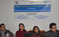 The Nepal Health Research Council was established in 1991 for the purpose of: regulating health research in Nepal (ensuring the ethical conduct of health research), generating and collating evidence for translation into policies and programs, and building the capacity of health research in the country. As part of one of our three major mandates we have been training people within and outside the health system in health system research, covering topics from writing research proposals; research management; data analysis and report writing; as well as scientific writing, including manuscript preparation.