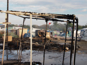 Even in better times the Jungle was a makeshift shantytown of tarps, tents, and mud, alternately smelling of food cooked on open fires and tear gas used by French police to keep refugees inside the camp. Yet, as bad as it was, it provided residents with a semblance of security and community. Seeing now the smoke and burnt remains, we fear what comes next for the migrants.