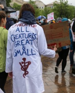 We marched against proposed budgets cuts by the current administration to the National Institutes of Health (NIH), the Centers for Disease Control and Prevention (CDC), the Environmental Protection Agency (EPA), and many of the governmental agencies that support scientific research and create the bedrock for public health. The proposed budgetary cuts would decrease the NIH budget by almost 20% and entirely eliminate the Fogarty International Center, which has been integral in building research capacity abroad, including against threats from emerging infectious diseases that are indiscriminate of national boundaries.