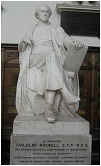 A statue of William Whewell (1794–1866) in the chapel in Trinity College, Cambridge, of which he was a student and later master. “[There is no] name by which we can designate the students of the knowledge of the material world collectively. We are informed that this difficulty was felt very oppressively by the members of the British Association for the Advancement of Science, at their meetings … in the last three summers. … Philosophers was felt to be too wide and too lofty a term …; savans was rather assuming, besides being French instead of English; some ingenious gentleman proposed that, by analogy with artist, they might form scientist, and added that there could be no scruple in making free with this termination when we have such words as sciolist, economist, and atheist—but this was not generally palatable; … it was not easy to discover an English equivalent for [the German] natur-forscher.” (From Whewell W. “On the Connexion of the Physical Sciences. By Mrs. Somerville”. Quarterly Review 1834; 51(101): 54-68.)
