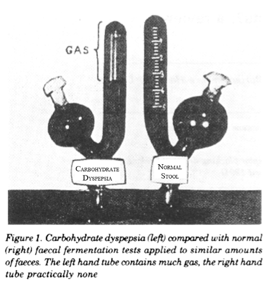 You don’t necessarily have to get your alcohol from a bottle; some people can produce it themselves. In the gut fermentation syndrome, also known as endogenous ethanol fermentation, autobrewery syndrome, and plain drunkenness disease, gut organisms ferment ingested carbohydrate to alcohol. In 1931, Hurst & Knott described what they called “intestinal carbohydrate dyspepsia” (figure), attributed to fermentation of dietary carbohydrate. Then, in The BMJ in 1948 Ladkin and Davies described an African child whose stomach ruptured because of distension by alcohol due to fermentation of sweet potatoes by a mixture of Gram negative cocci and bacilli, although they did not give the syndrome a name. The terms “drunken syndromes” and “auto-brewery syndrome” emerged in the 1970s.