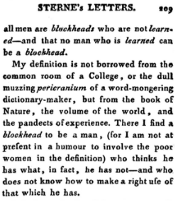 - word-mongering (1768), first recorded in a letter written by Laurence Sterne, discussing his definition of the word “blockhead” (pictures);