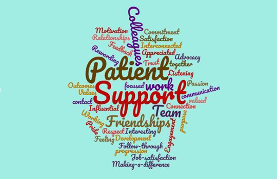 Other key factors were the quality of relationships with peers and colleagues, being treated with kindness, and feeling valued by patients and managers alike, and being supported by managers.
