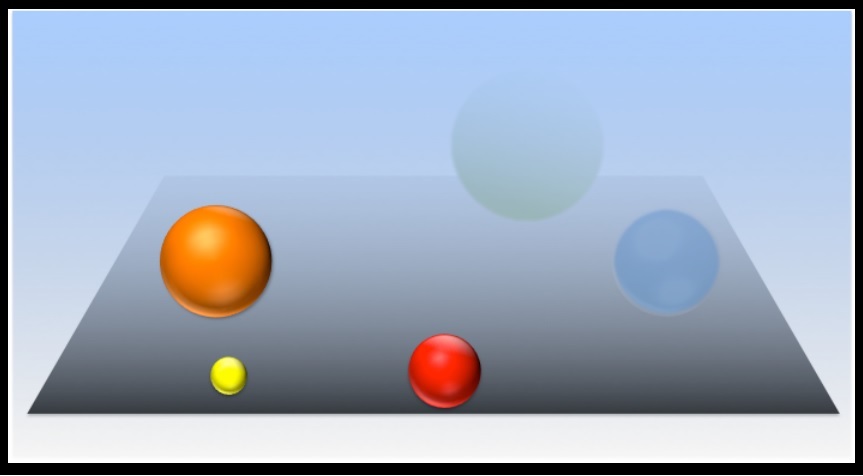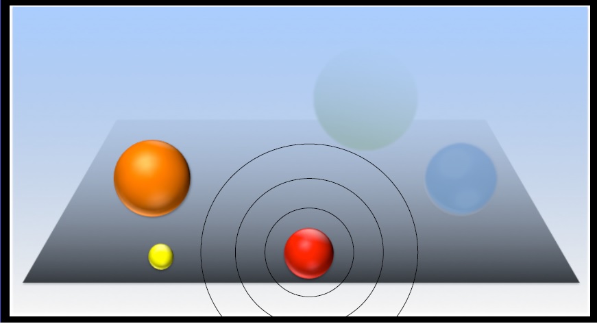 Humans, as Redelmeier explained, are fallible when it comes to judging distance. We can judge something within reach fairly accurately, but the further away something is the poorer our judgment. He showed a picture with five balls, three of them clear and bright and two of them faded, and asked the audience to say which was the closest to a red ball.