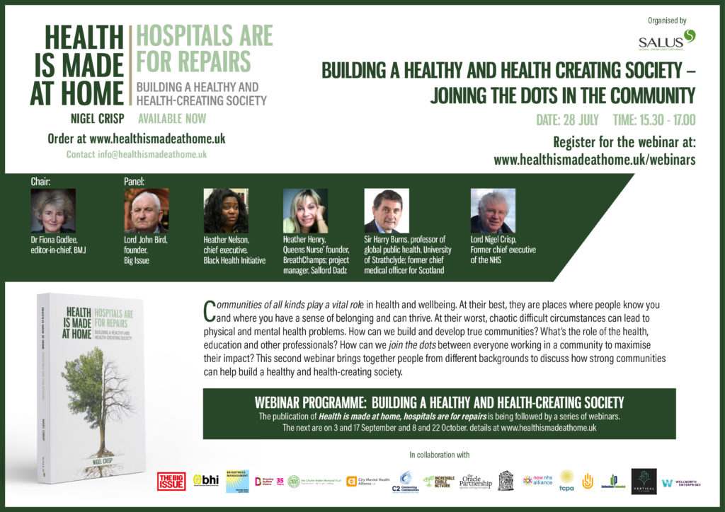 Nigel Crisp is a crossbench member of the House of Lords. He was Chief executive of the English NHS and Permanent Secretary of the UK Department of Health from 2000 to 2006. His latest book “Health is made at home, hospitals are for repairs” was published by Salus on in June 2020.