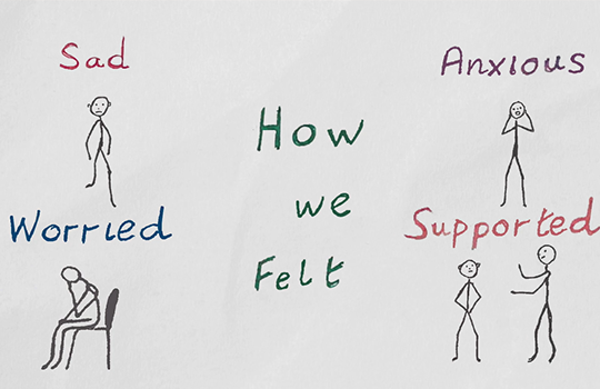 I often introduced themes for the drawing task, such as how we felt, what we did to help us cope, and more lighthearted ones such as how we looked during lockdown. The sessions were sometimes emotional but some were uplifting.