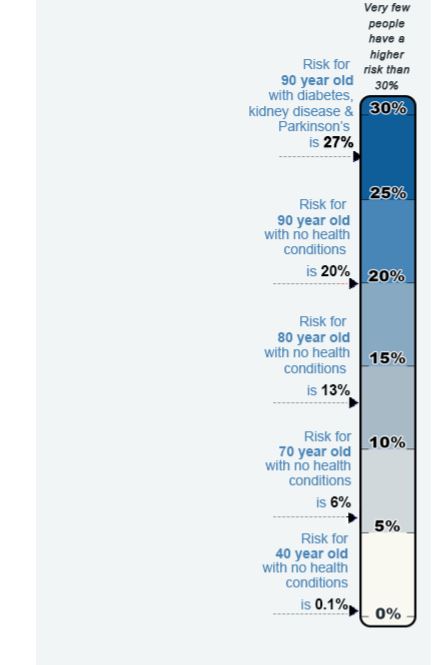 Image (left) illustrating the risk of dying from covid-19 if someone has already caught it (numbers are purely illustrative)