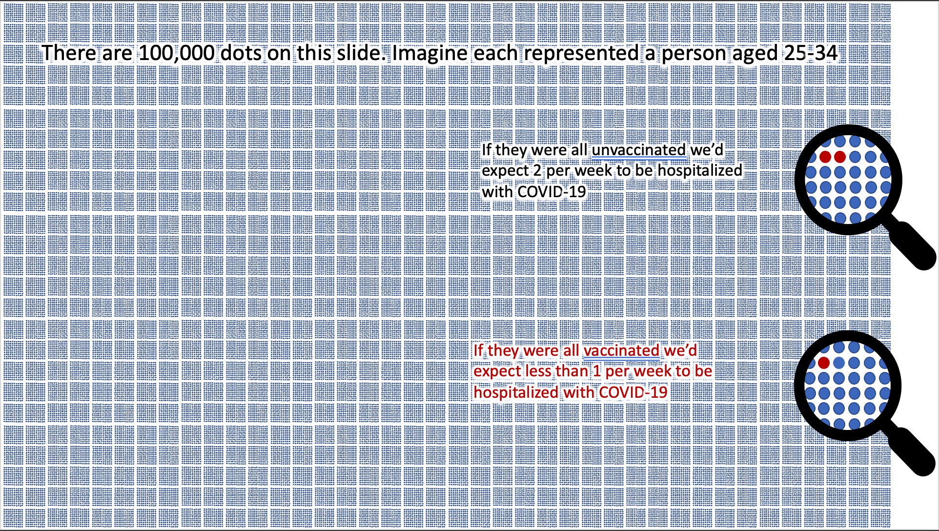 On top of that, we had to make clear verbally that the prevention of ICU admissions were far from the only benefits of the vaccine. For every one ICU admission prevented there would be many, many hospital admissions, cases of long covid, and transmissions of the virus to others that had also been prevented in the vaccinated group.