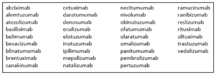 Box 1. There are upwards of 700 monoclonal antibodies; this selection is based on those listed in the British National Formulary