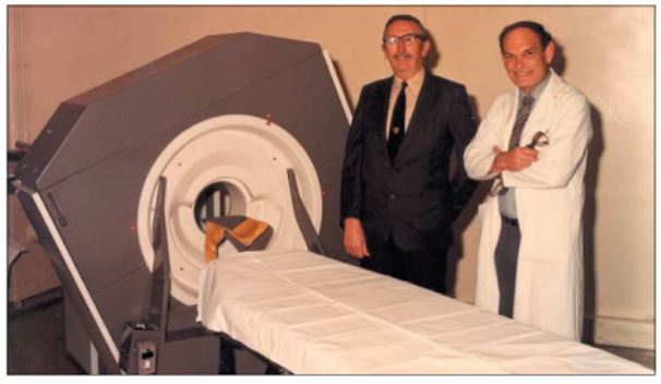 Figure 1. Godfrey Hounsfield (left) and James Ambrose (from The BMJ 2006; 332: 977)