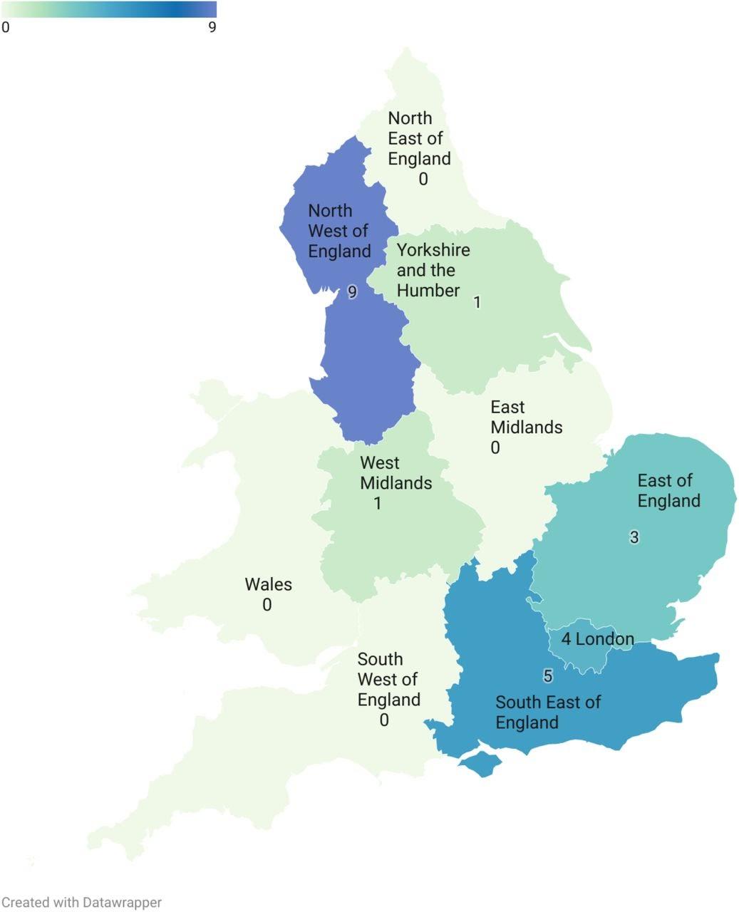 Map of the number of Prevention of Future Deaths reports involving COVID-19 issued by coroners in England and Wales between 1 January 2020 and 28 June 2021