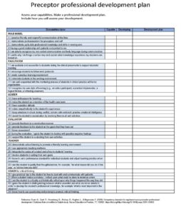 This tool is for any healthcare professional interested in preceptorship. Individuals and organisations could link this to continuous professional development, revalidation training and/or for developing preceptorship and educator workforces. The tool is used to inform preceptor professional development for new staff and students in the USA and my own work network in Australia. I welcome your use of the tool and invitations to collaborate on these topics.
