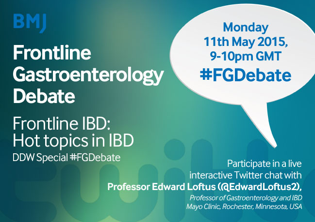 After the great success of the #FGDebate with Dr Simon Gabe, we are delighted to announce our next #FGDebate will be a #DDW15 Special debate with world renowned IBD expert Professor Edward Loftus (@EdwardLoftus2), Professor of Gastroenterology and IBD, Mayo Clinic, Rochester, Minnesota, USA, on Monday 11th May 2015, at 9-10pm GMT and will discuss, ‘Frontline IBD: Hot topics of IBD’.