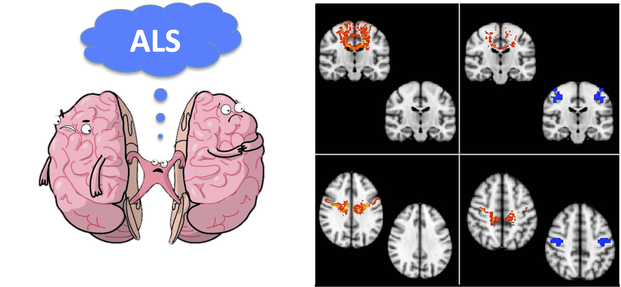 In this study, the authors have explored interhemispheric connectivity in 38 patients with ALS and 35 controls using diffusion tensor imaging (DTI) and resting state functional MRI (rfMRI). Indices of interhemispheric structural and functional neural connectivity were compared between groups. The rfMRI revealed a reduction in homotopic connectivity in ALS patients, specifically between the precentral and postcentral gyrus, the paracentral lobule, the superior temporal gyrus, the middle cingulate gyrus, the putamen and the superior parietal lobule, suggesting an extensive dysfunction in interhemispheric functional connectivity. In addition, DTI analysis in ALS patients showed a reduction in structural connectivity through the CC, specifically affecting subregions II, III and V. Finally, the combination of structural and functional data suggest that the central motor cortical interhemispheric fibres were the most affected in ALS.