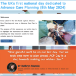 On the 8th May the first national Advance Care Planning day will take place in the United Kingdom. This day of action and awareness will highlight the importance of Advance Care Planning and encourage society to document, share and discuss their wishes.