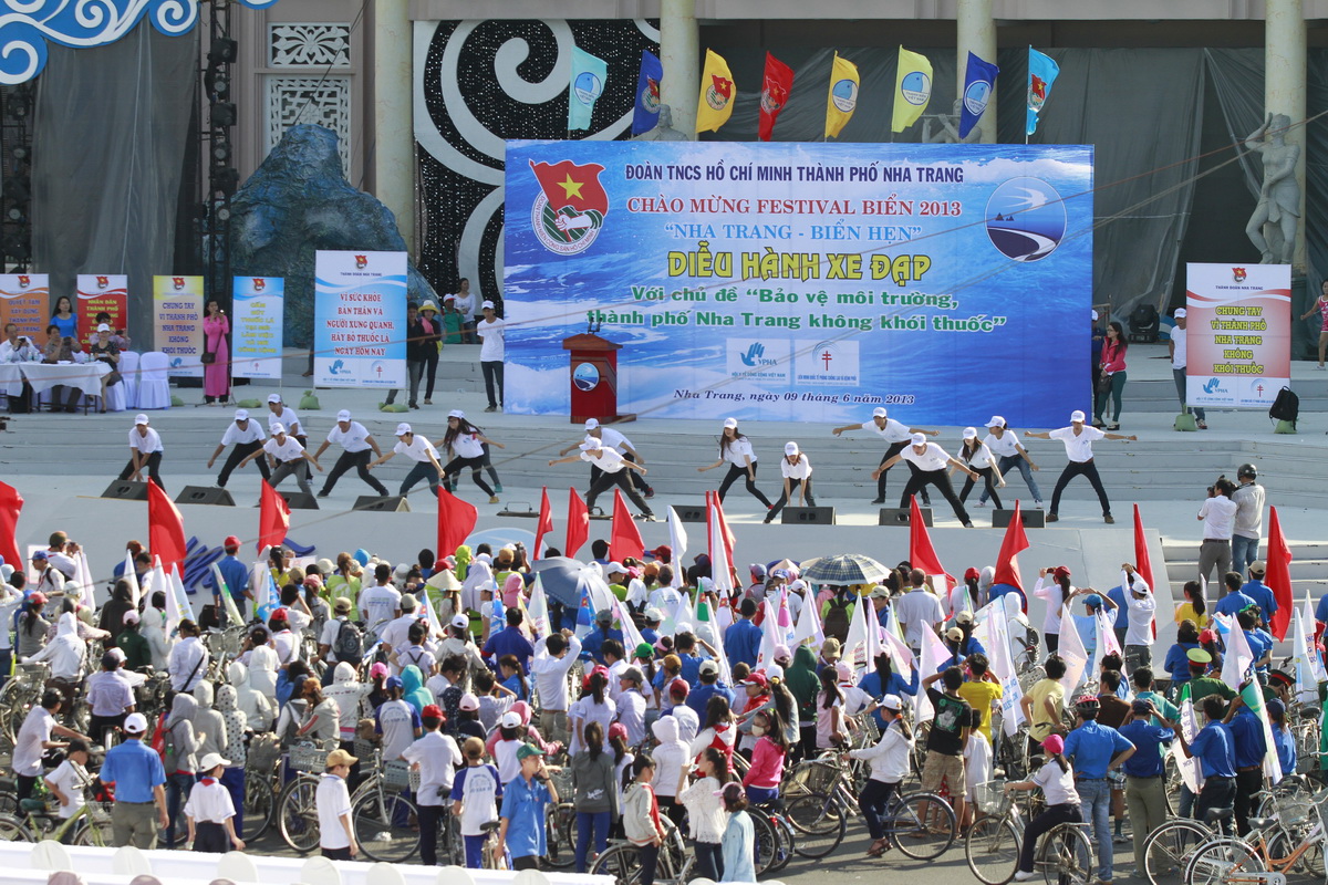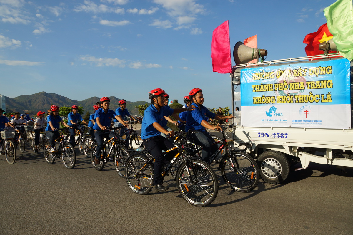 A bike parade was held on June 9th 2013 with the theme ‘Environment protection and smoke-free Nha Trang city’. Supported by Nha Trang Municipal People’s Committee in collaboration with Vietnam Public Health Association and Khanh Hoa Provincial Public Health Association, the event attracted 2000 participants including many young people, as well as Mr Takeshi Kasai, Representative of WHO in Vietnam.