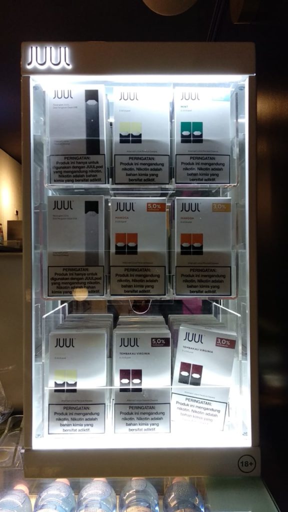 In early July, we authored an industry watch article JUUL from the USA to Indonesia, published in Tobacco Control. It outlined moves by JUUL to formally enter the Indonesian market, where the products were already being sold both online and in vape shops. JUUL has now officially launched in Indonesia in partnership with Erajaya Group, which distributes Apple and Samsung phones in Indonesia. Never before has an e-cigarette company in Indonesia had the financial resources or clout of JUUL. As we foreshadowed, JUUL’s pricing strategy and in-country advertising and promotion have evolved, reflecting a more strategic approach to achieving market reach and penetration in this loosely regulated market.